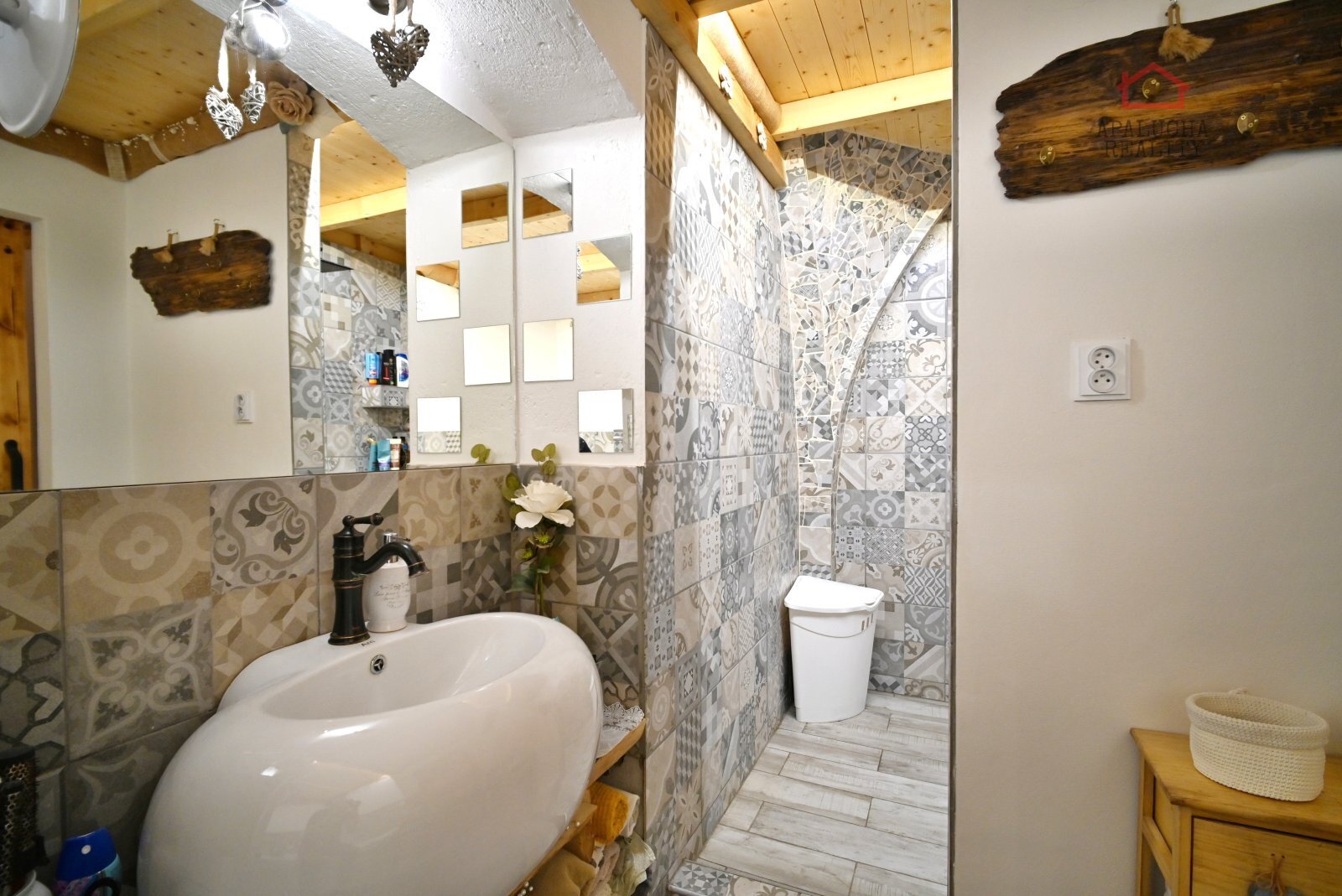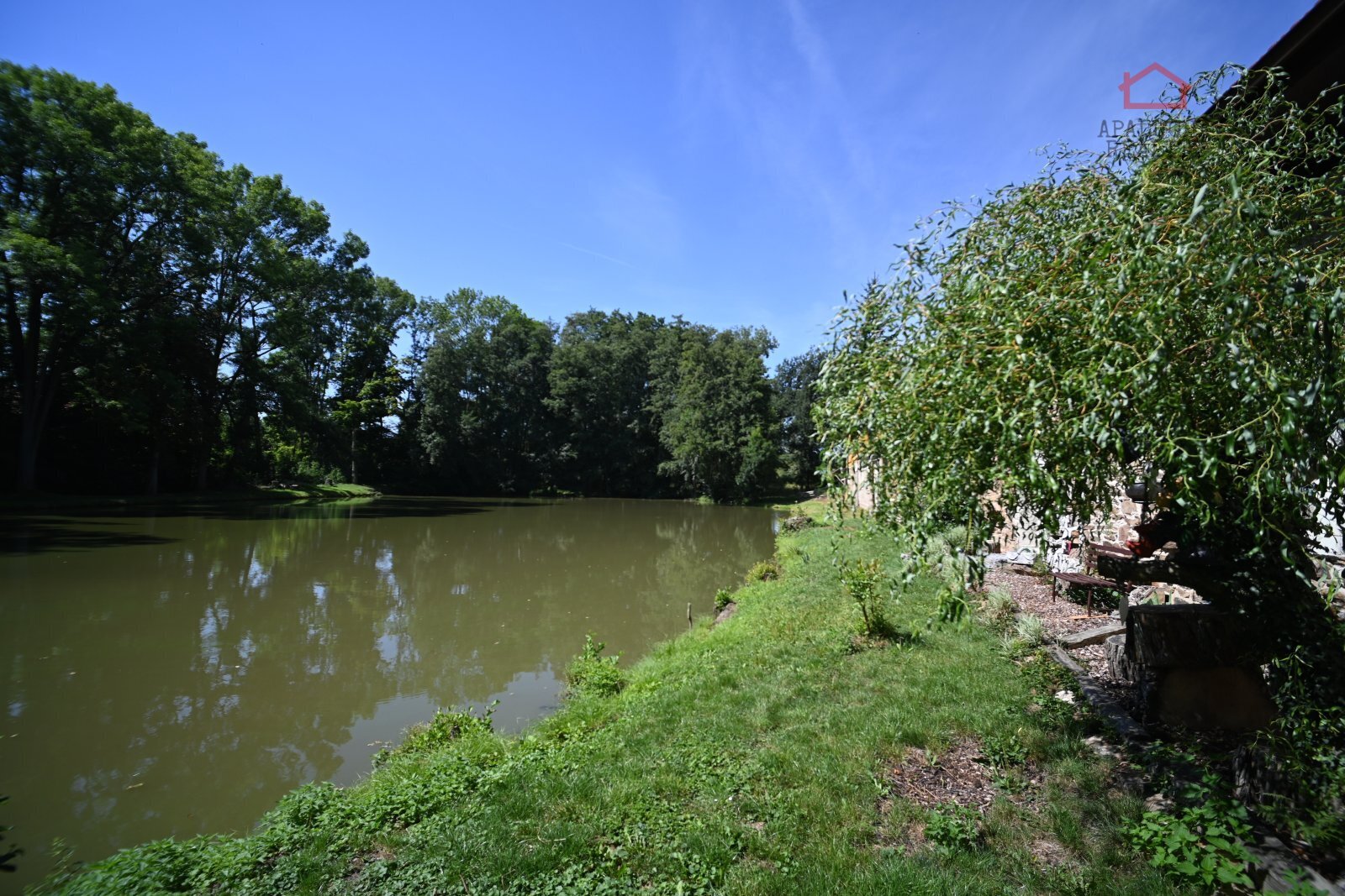 Neuvěřitelné kouzlo této nemovitosti na Vás dýchne okamžitě po vstupu do haly spojené s kuchyní a obývacím pokojem, kde nechybí ani krb a ranní kávu si můžete vychutnat přímo na břehu rybníka, nebo na terase s vířivkou.
