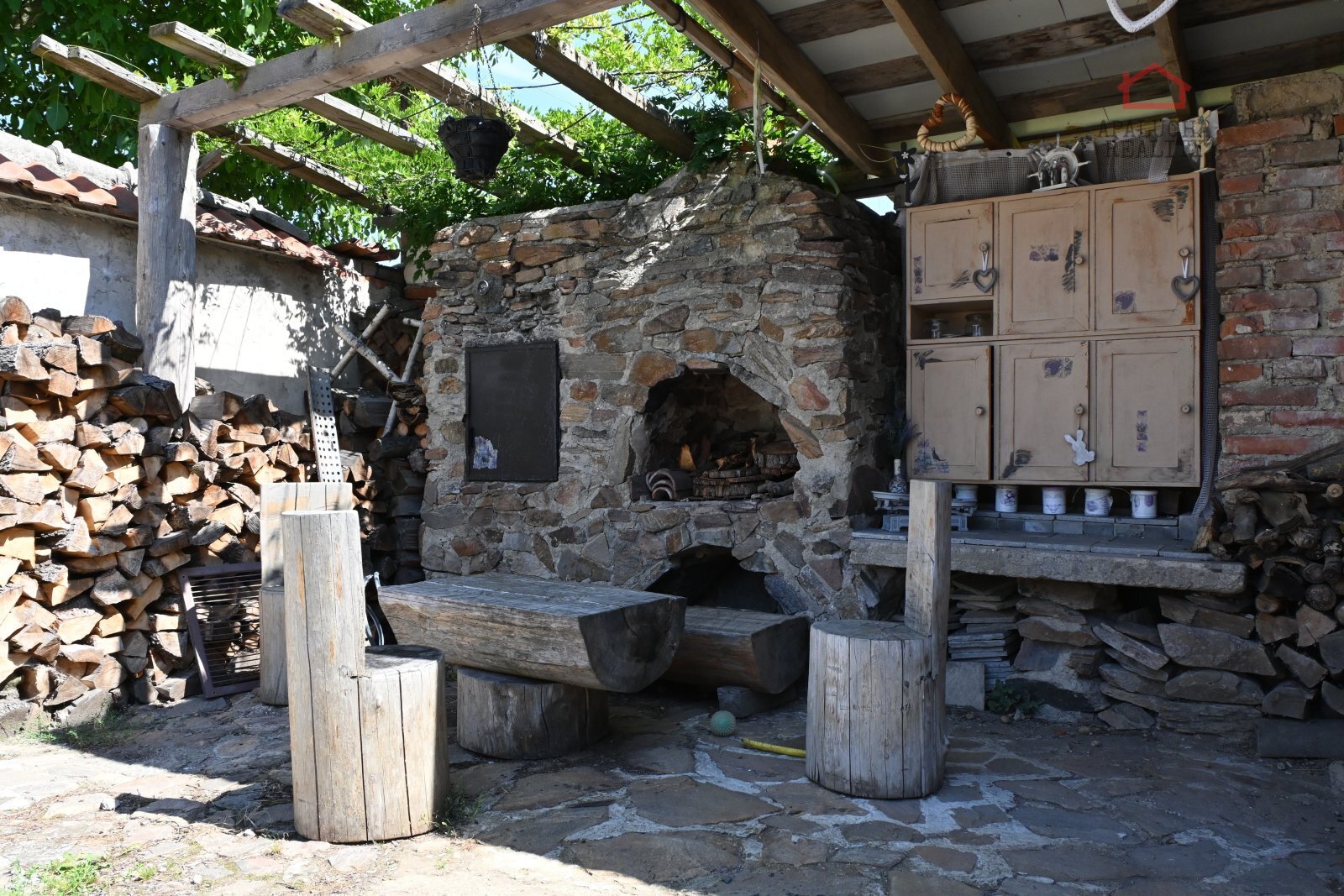 Dům má tři komíny s pravidelnými revizemi. Teplou vodu zajišťuje 200 l bojler. Dům je zároveň velmi udržitelný s vlastním zdrojem pitné vody z kopané studny, hluboké 9 metrů a užitkové vody z druhé studny. Výhledově se v obci plánuje obecní vodovod.