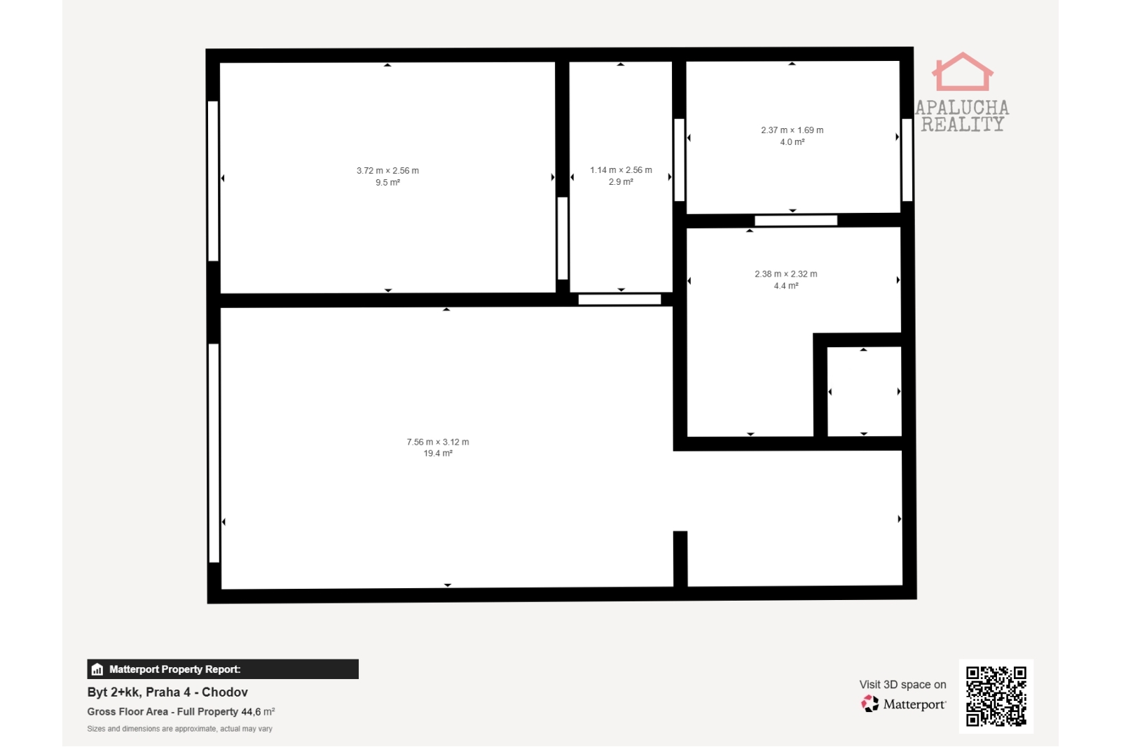 APALUCHA REALITY Vám exkluzivně nabízí k prodeji prostorný byt 2+kk o výměře 44,6 m² se sklepní kójí 3 m², který se nachází v 9. patře udržovaného panelového domu s výtahem v ulici Na sádce 1748/3, Praha 11 - Chodov.
