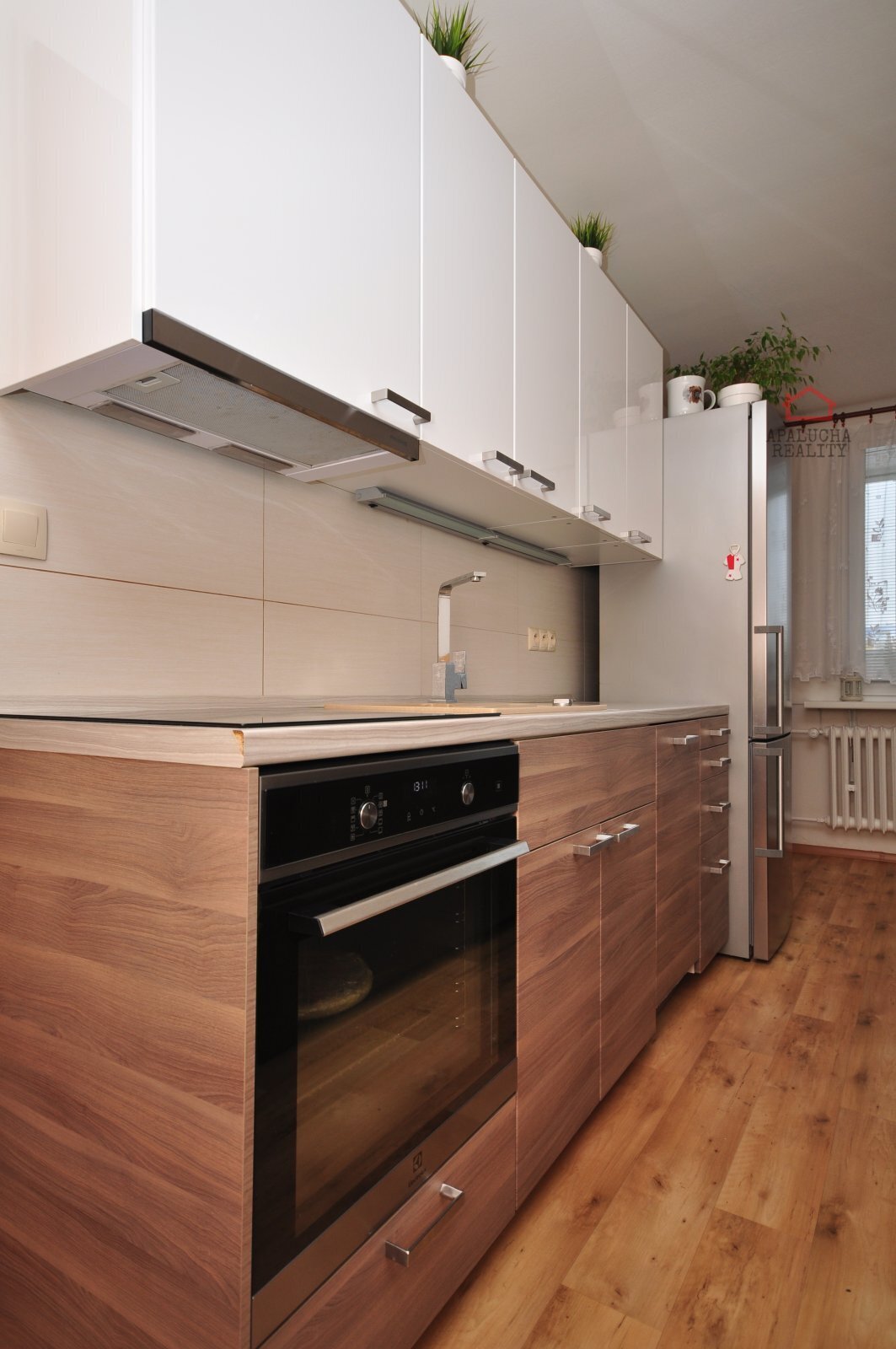 APALUCHA reality Vám exkluzivně nabízí byt v osobním vlastnictví 1+1, nyní po rekonstrukci má dispozice jako 2kk. Byt je ve velmi pěkné, klidné lokalitě v ulici Černého, Praha 8-Střížkov. Byt se nachází ve čtvrtém patře sedmipatrového domu, okna jsou situovaná na jih. Panelový dům je celkově zrekonstruovaný, a to zejména zateplení, fasáda, střecha, kvalitní plastová okna a stoupačky, kamerový systém u obou vstupů do domu, ve výtahu a také v kočárkárně, přístup do domu čipem. Byt je v luxusním stavu po celkové velmi zdařilé rekonstrukci, (zděné jádro, podlahy, plastová okna, nové el. rozvody a rozvody vody), zasklená lodžie vč. nové podlahy. Součástí prodeje bytu je vestavná šatní skříň s botníkem v předsíni a vestavná šatní skříň v obývacím pokoji, postel s velkým úložným prostorem, pouze 2 roky stará kuchyňská linka vč. vestavných spotřebičů. K bytu náleží komora, která je hned vedle vchodu do bytu. Současné měsíční zálohy 3.700 Kč včetně fondu oprav, který činí pouze 750 Kč. Kvalitní hospodaření SVJ, dům není zatížen žádnými úvěry. V okolí je velké množství zeleně (park před domem, dětské hřiště), Ďáblický háj 1km, Čimický háj 3km, 600m na stanici metra C Střížkov, 1km na stanici metra C Ládví, autobusová zastávka 200m, 4 stanice na metro B Vysočanská. Nákupní centrum Kaufland 300m, nákupní centrum OC Letňany - Tesco 3km, Globus 4km. Velkou výhodou je parkování přímo před domem, díky rezidentským zónám široký výběr parkovacích míst, případné bez zónové parkování u domu také bez problémů. Financování možné z vlastních zdrojů nebo úvěrem, se kterým Vám rádi poradíme.